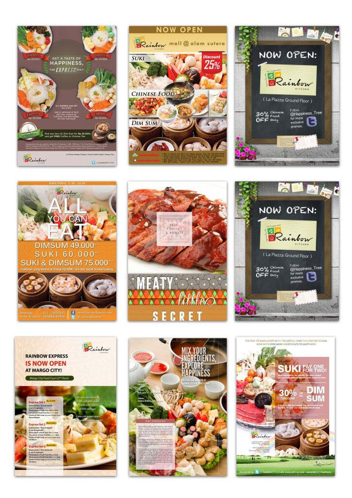 I working closely with chef and the team at Rainbow Kitchen to refresh all food menus that was applied across store, signage, menu book, packaging and media promotion.
